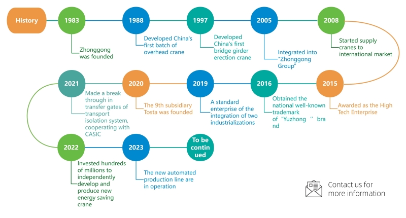 Henan Tosta Machinery Co., Ltd. is the subsidiary of Henan Zhonggong Group. Henan Zhonggong Group was founded in 1983 and covers an area of more than 240,000 square meters. As R&D oriented company, we have over 1,200 employees and more than 200 engineers. With 9 subsidiaries, Zhonggong group has developed into a large-scale equipmentmanufacturing enterprise integrating the research and development, design, manufacturing, sales, installation, commission, after-sales service, import and export business of gantry crane, overhead crane, European standard crane, shipyard crane, container crane, KBK crane, jib crane, movable gantry crane, winch, hoists etc.