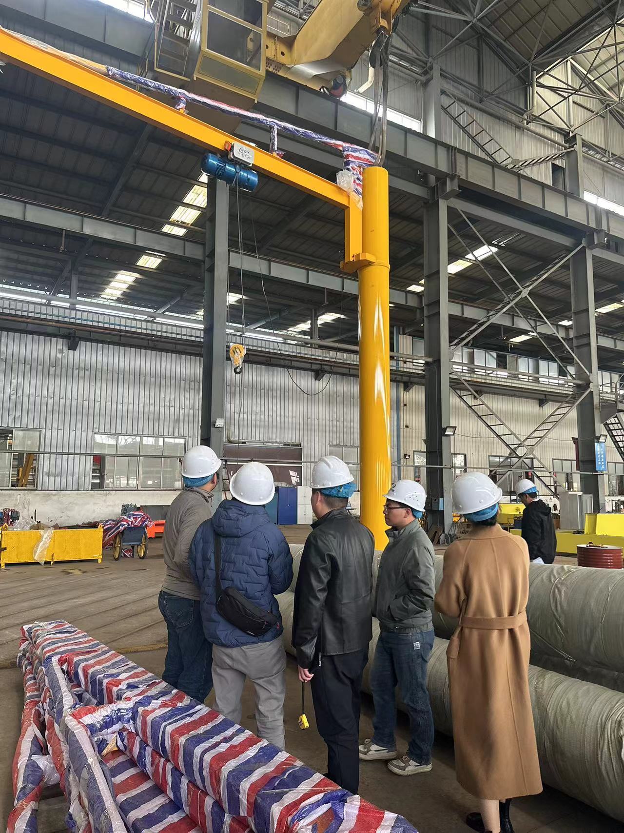 In December 2024, a delegation from Indonesia visited Henan Zhonggong Group to inspect six jib cranes they had previously ordered. During their visit, the team received a detailed introduction to the jib crane products, the company’s production capabilities, and quality control procedures. They also toured the workshop to observe the manufacturing process firsthand.