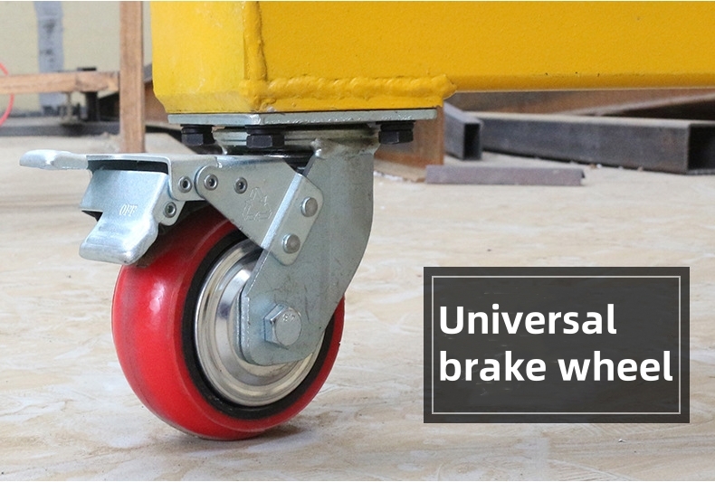 Heavy-duty caster wheels with locking devices, allowing easy movement and stable positioning without rail installation.